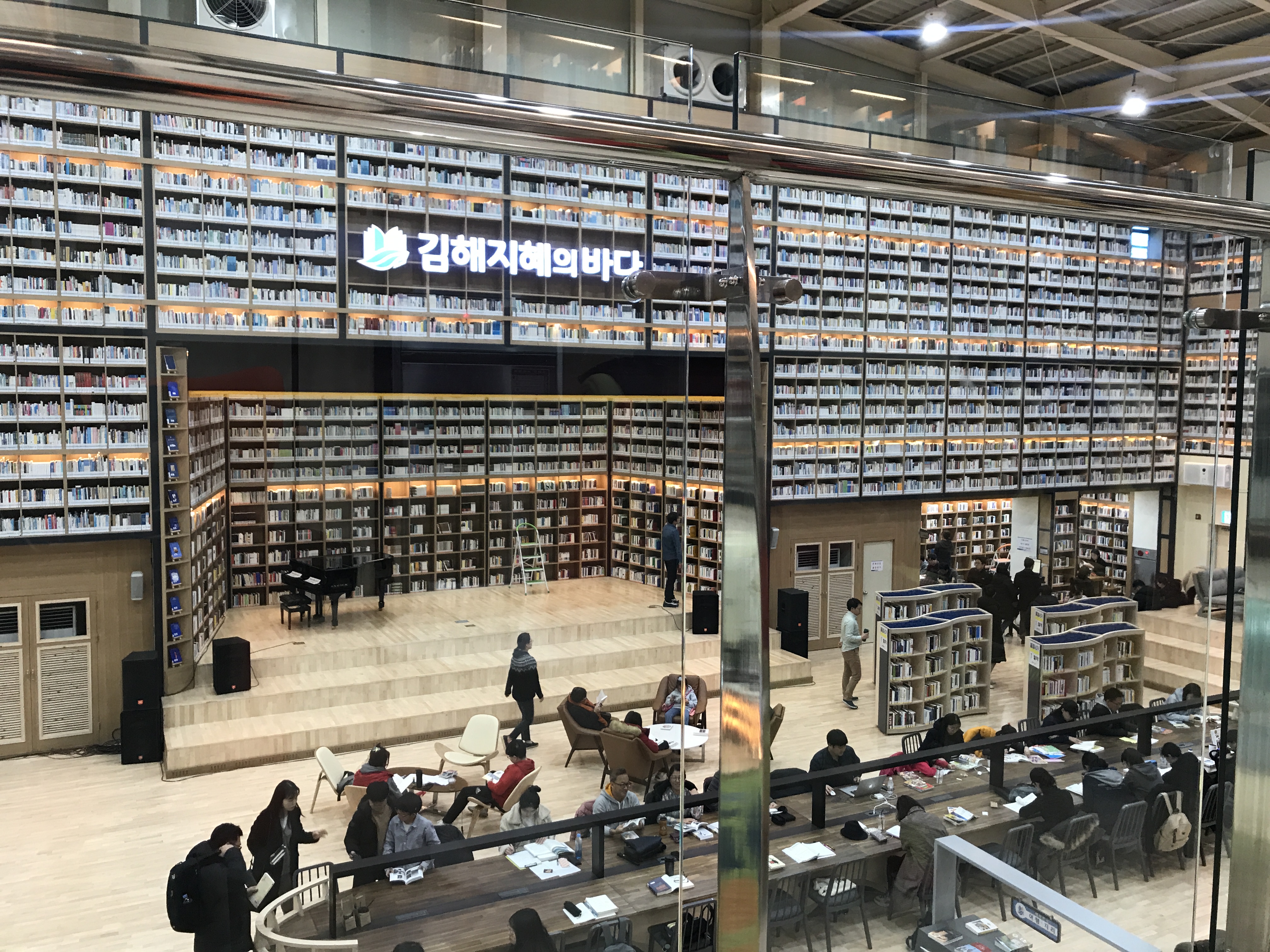 실내체육관을 마치 코엑스에 있는 별마당도서관처럼 꾸며 놓았다