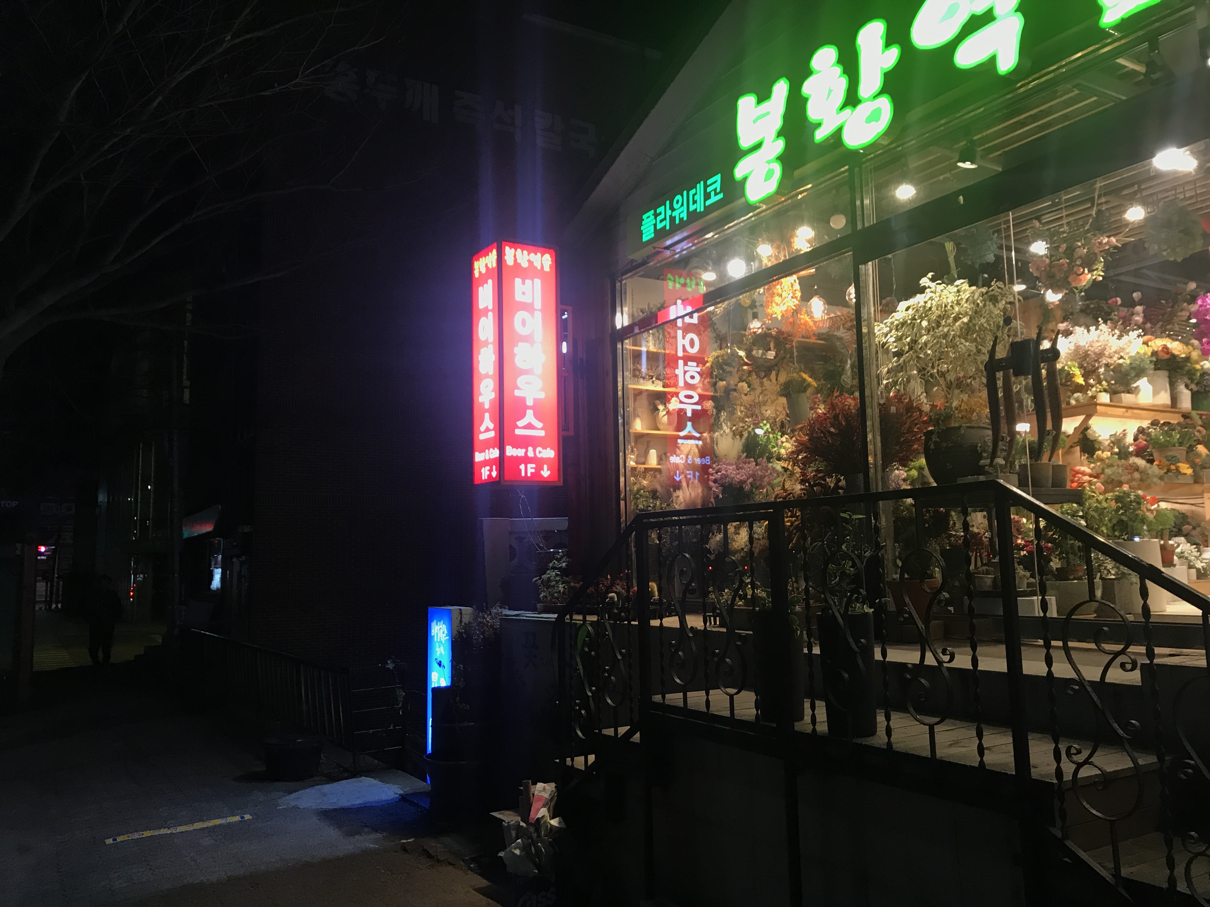 이층이 꽃집이고 일층이 맥주집이다